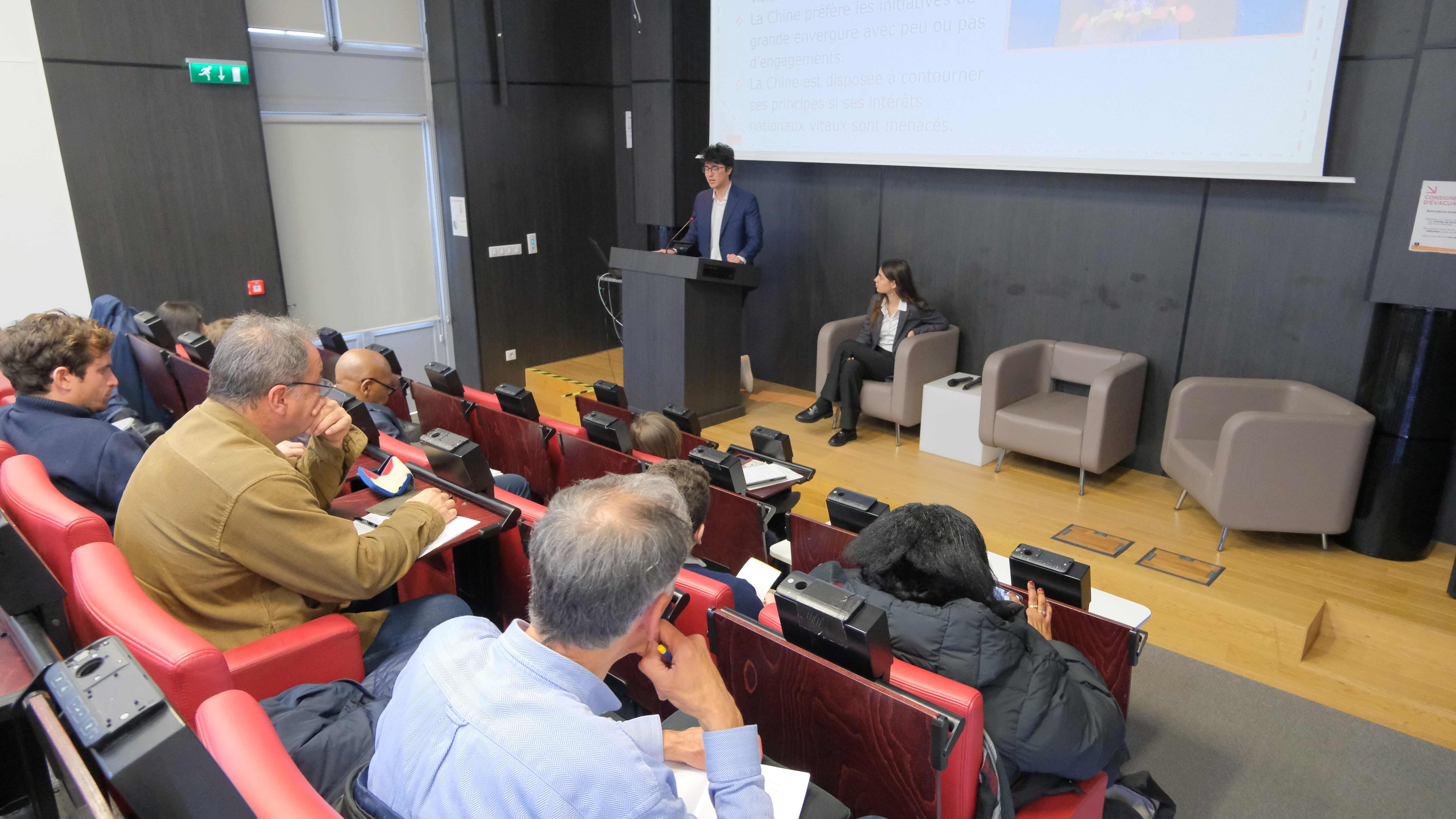 DOWNLOAD pdfOn March 26, 2025, ChinaMed Research Fellows Leonardo Bruni and Bianca Pasquier were hosted by the Institut de Recherche Stratégique de l'École Militaire (IRSEM) for a seminar titled "L'Initiative pour la sécurité mondiale : la médiation chinoise et les conflits de la région méditerranéenne" (The Global Security Initiative: Chinese Mediation and Conflicts in the Mediterranean Region). The event, chaired by Dr. Carine Pina (IRSEM), saw the presentation of the ChinaMed's research Séminaire Asie 4/AAMO on perceptions of and key characteristics defining China’s role as a mediator in the wider Mediterranean region.